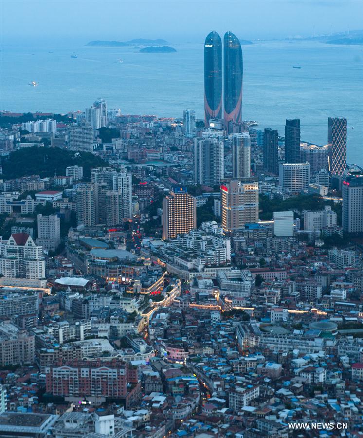 Aerial photo taken on Aug. 3, 2017 shows the night scene of Xiamen, southeast China's Fujian Province. Hundreds of streets and alleys here present the charm of southern Fujian. According to China's Belt and Road Initiative blueprint, Xiamen, the beautiful seaside city, is set to become the strategic pivot city of the 21st Century Maritime Silk Road, and it will hold the ninth BRICS Summit in September. (Xinhua/Song Weiwei)