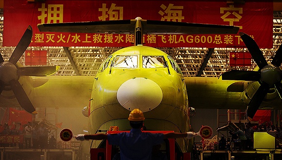The 37-meter-long AG600, which has a wingspan of 38.8 meters, has a maximum take-off weight of 53.5 tons. It can collect 12 tons of water in 20 seconds, and transport up to 370 tons of water on a single tank of fuel, according to an April Xinhua News Agency article.