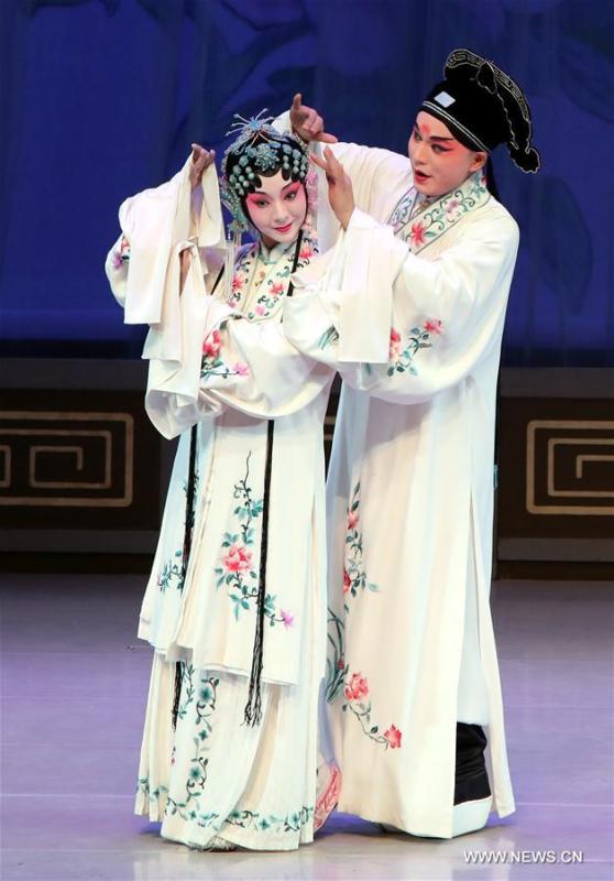 Troupers perform during a workshop to promote Kunqu Opera in Hong Kong of south China Aug. 13, 2017. A series of events as symposium and performance are held by a Kunqu opera troupe from Jiangsu Province in Hong Kong. (Xinhua/Li Peng)