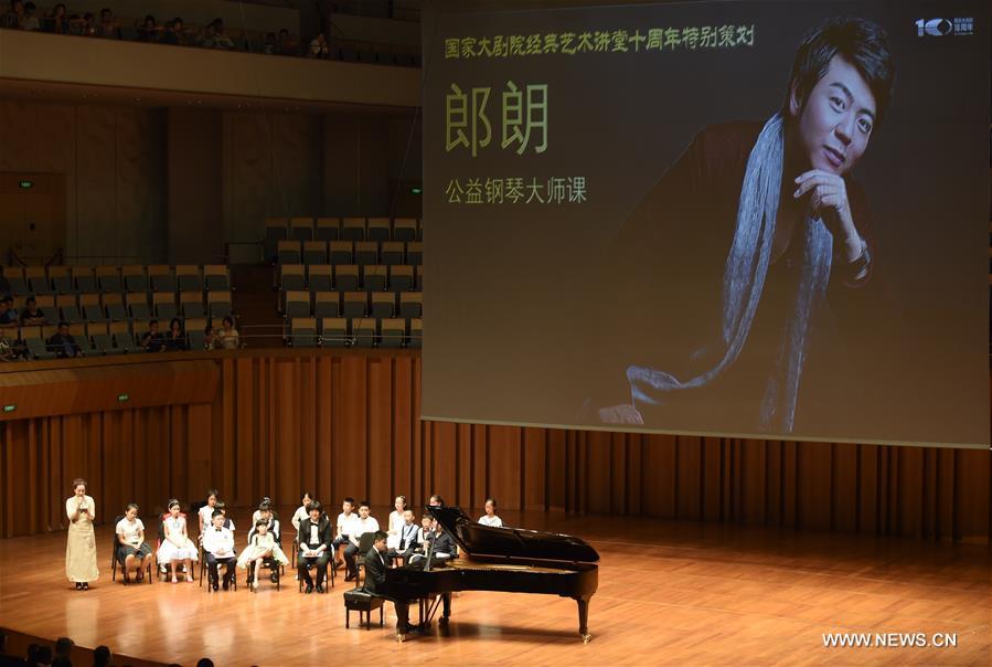 Pianist Lang Lang instructs children at National Center for the Performing Arts (NCPA) in Beijing, capital of China, Aug. 14, 2017. As the season's Artist-in-Residence, Lang Lang shared his story and piano skills with children at an educational session in the NCPA on Monday. (Xinhua/Luo Xiaoguang)