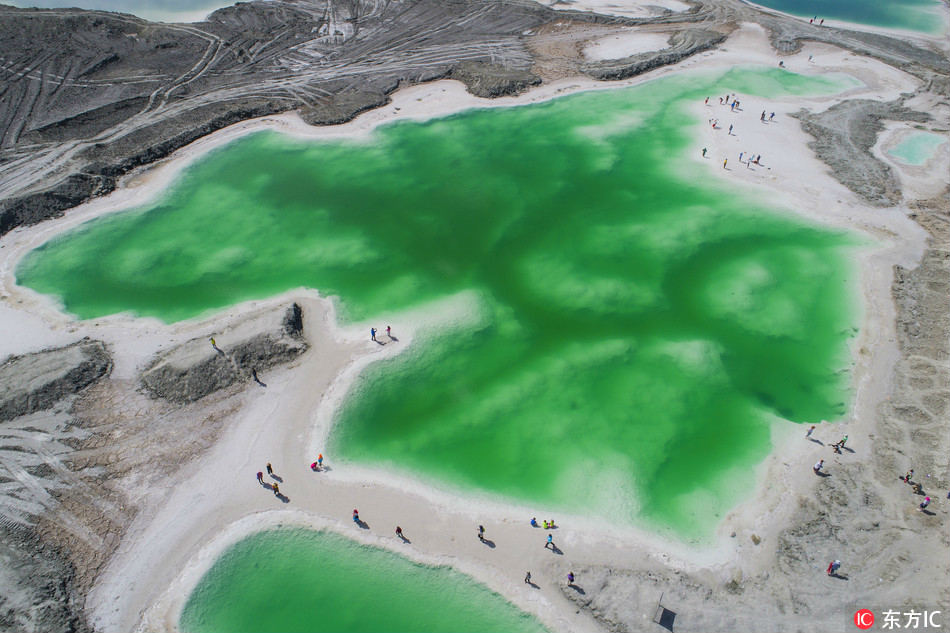 An aerial view of the "Emerald Lake" which is popular with sightseers, 3 August 2017. [Photo: IC]