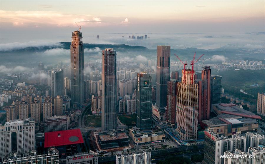 Photo taken on Aug. 19, 2017 shows the downtown scene in Nanning, capital of south China's Guangxi Zhuang Autonomous Region. The 14th China-ASEAN Expo will be held between Sept. 12 and 15 in Nanning. (Xinhua/Li Xin)
