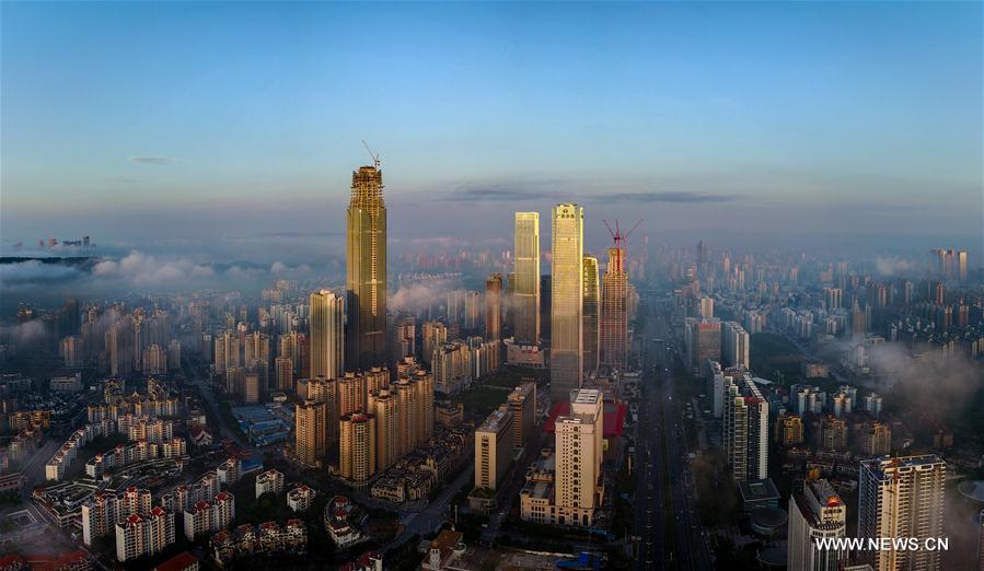 Stitched photo taken on Aug. 19, 2017 shows the downtown scene in Nanning, capital of south China's Guangxi Zhuang Autonomous Region. The 14th China-ASEAN Expo will be held between Sept. 12 and 15 in Nanning. (Xinhua/Li Xin)