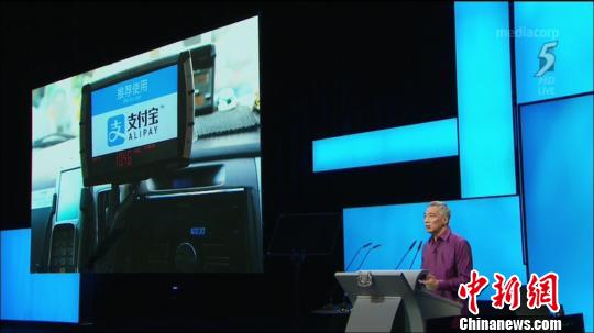 (Singapore Prime Minister Lee Hsien Loong is talking about Alipay during his National Day Rally on August 20 Photo/Chinanews.com)