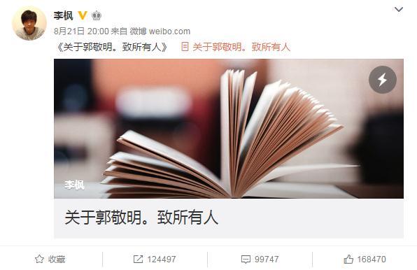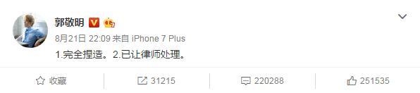 Guo Jingming has since responded to Li Feng's accusations, saying the claims are completely false, and have been handed over to his lawyer for a potential lawsuit against Li.
