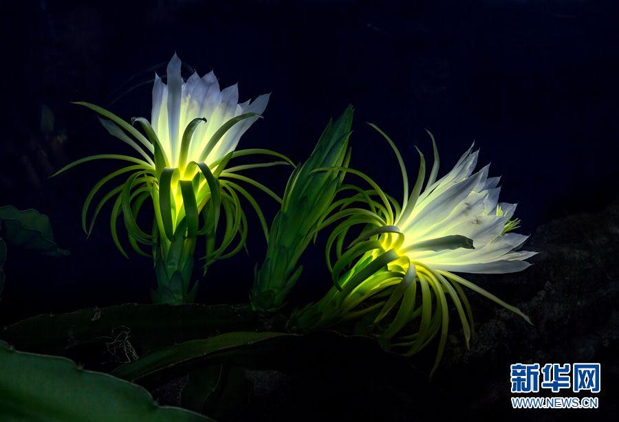 Most of us are familiar with pitaya, but how much do we know about the flower? The luminous flowers nearly glow in the dark with their white feathery petals and yellow depths, and close up in the early morning. Once the flower fades after being pollinated, the dragon fruit (or pitaya) begins to develop. (Photo/Xinhua)