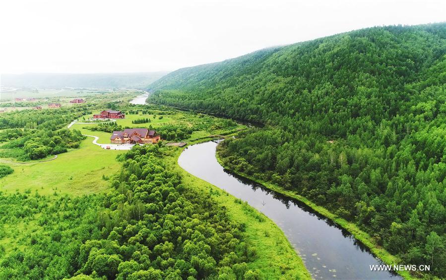 Photo taken on Aug. 10, 2017 shows the construction site of a road bridge over the Heilongjiang River at the border of China and Russia. The bridge is over 200 kilometers away from Huma County. The road bridge linking Heihe of northeast China's Heilongjiang Province and the Russian city of Blagoveshchensk is scheduled to open to traffic in 2019. (Xinhua/Wang Song)