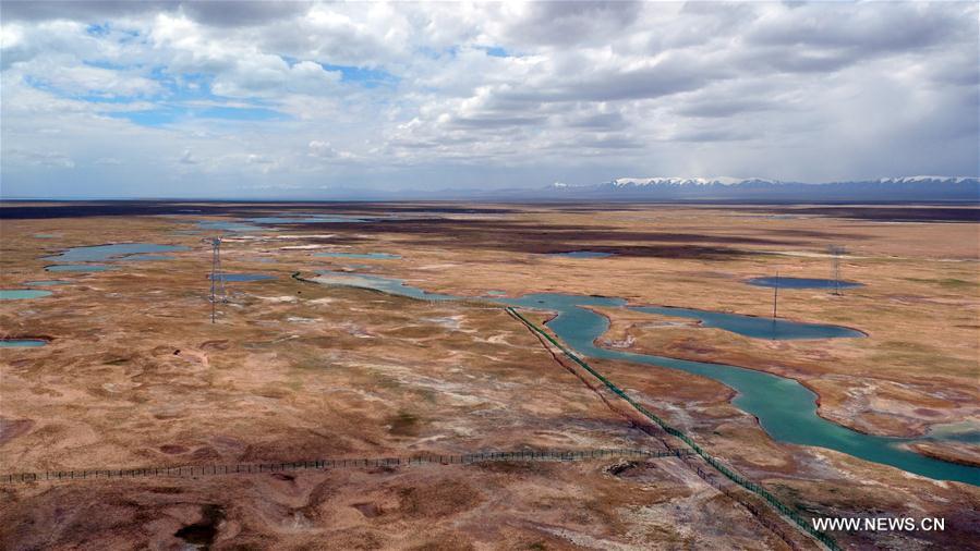 Aerial photo taken on July 2, 2017 shows the landscape of Hoh Xil in Yushu Tibetan Autonomous Prefecture, northwest China's Qinghai Province. Hol Xil has an average altitude of over 4,600 meters, making it an ideal habitat for Tibetan antelopes, kiangs and other animals. It was enlisted as one of the UNESCO's World Natural Heritages in July 2017. (Xinhua/Wang Bo)