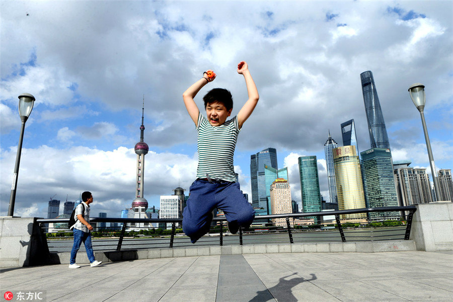 A boy poses at the Bund in Shanghai, August 23, 2017. [Photo/IC]