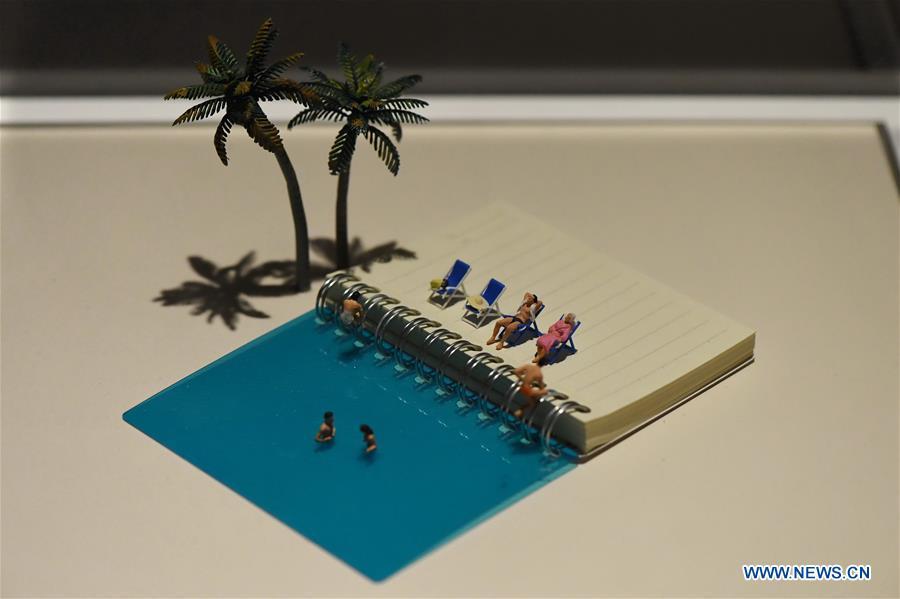 Photo take on Aug. 24, 2017 shows a miniature artwork displayed in Taipei, south China's Taiwan. "Tanaka Tatsuya's Fantastic World", a childlike exhibition held in Taipei with the imaginative mini world of handmade dolls and daily items, is created by Tanaka Tatsuya, a Japanese artist. The exhibition has attracted many people and will last till Sept. 10. (Xinhua/Zhou Mi)