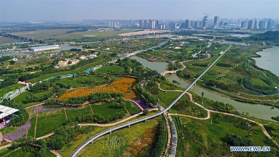 Photo taken on Aug. 30, 2017 shows a general view of the site of the 9th China Flower Expo in Yinchuan, capital of northwest China's Ningxia Hui Autonomous Region. The event is to kick off on Sept. 1, 2017. (Xinhua/Wang Peng)