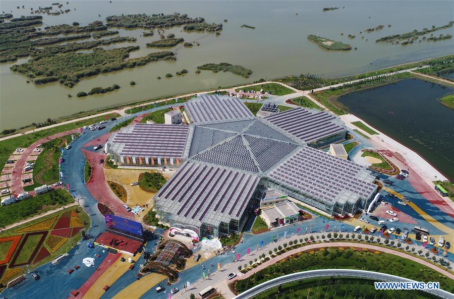Photo taken on Aug. 30, 2017 shows a view of a part of the site of the 9th China Flower Expo in Yinchuan, capital of northwest China's Ningxia Hui Autonomous Region. The event is to kick off on Sept. 1, 2017. (Xinhua/Wang Peng)