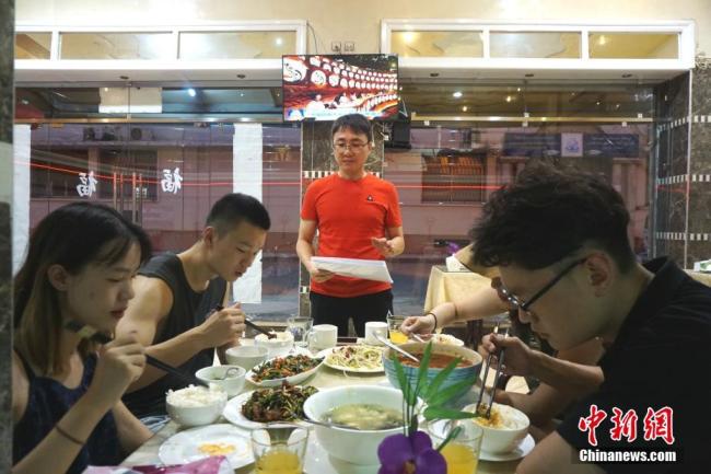 Chinese tourists dining at Wang Luping's Chinese restaurant in Morocco. [Photo: Chinanews.com]