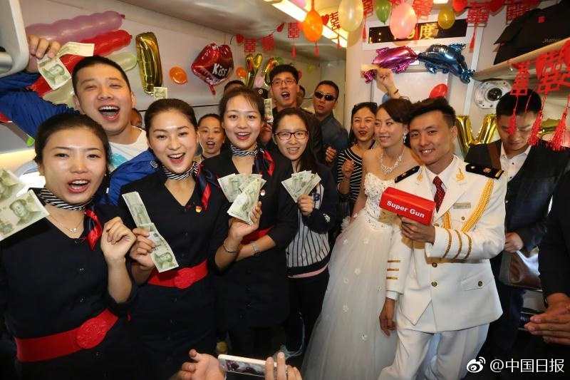 The couple worked for the railways commuting between Harbin and Daqing in Heilongjiang. This time, they used Train No. D6907 as their wedding car, and their relatives and friends were invited to celebrate with the newlyweds.
