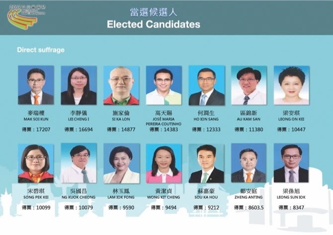 Macao Special Administrative Region (SAR) has elected 26 members to its new 33-member legislature, with the remaining seats to be appointed by Chief Executive Fernando Chui Sai On within the next two weeks.