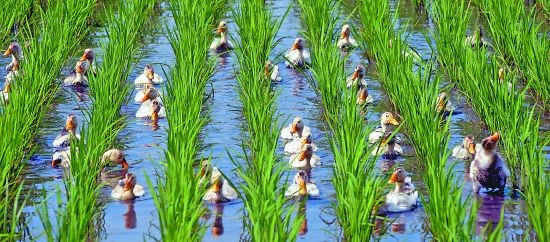 People in Huinan county, southeast of the province, raised 5,000 ducks in rice fields feeding them on grass and prawns. Through this approach and assisted by manual weeding, chemical pesticides were no longer needed.