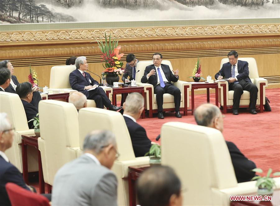 Chinese Premier Li Keqiang meets with a Japanese delegation from major Japanese enterprises in Beijing, capital of China, Nov. 21, 2017. The delegation was headed by Chair of the Japan Business Federation Sadayuki Sakakibara, President of the Japan-China Association on Economy and Trade Shoji Muneoka, and Chair of the Japan Chamber of Commerce and Industry Akio Mimura. (Xinhua/Pang Xinglei)