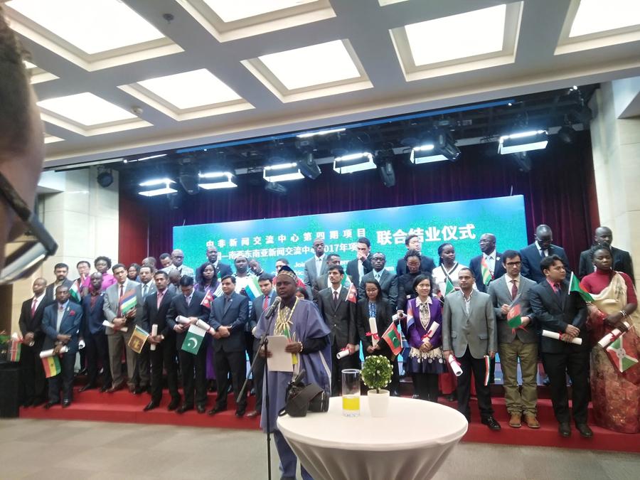 Officials, African, South Asian and Southeast Asian journalists at the joint closing ceremony of the 2017 journalism fellowship programme. Photo by CAPC