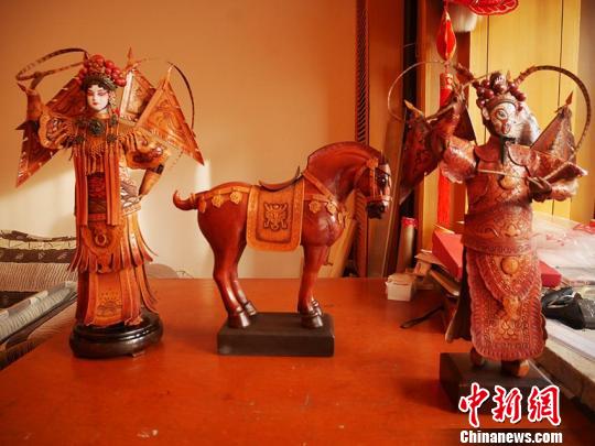 By teaching himself and constantly improving his craft for years, 65-year-old Wang Huaimin in northeastern China’s Jilin City has carved many Chinese opera figures on leather.