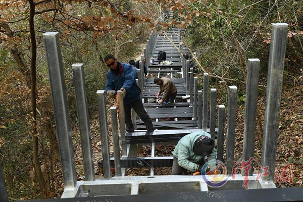 On December 6, Diaoyuwa-Weibozhan trestle road in Xianshan Greenway (Phase 2) was under intense construction.