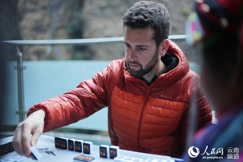 Beating Chinese players, two French won gold and silver at an international mahjong competition held on a 170-meter-high glass skywalk in Yangbi County, southwest China’s Yunnan province, Dec. 17.