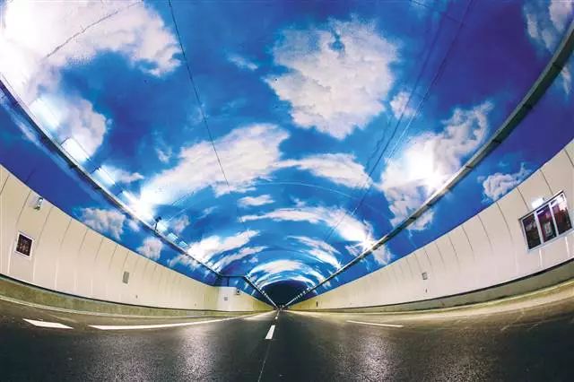 The painted top of the tunnel is a major highlight of the project. The sky and clouds painting emerges every one kilometer in the tunnel, refreshing the drivers with the bright colors.