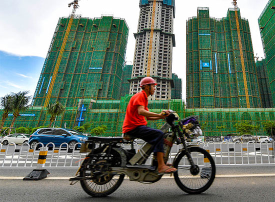 A worker passes by a property project in Haikou, capital of South China's Hainan Province in September. (Photo: VCG)