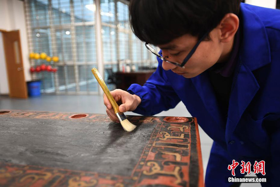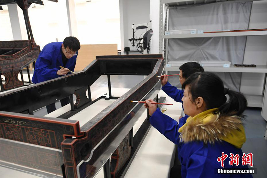 Employees at the Chengdu Institute of Cultural Relics and Archaeology spent almost 17 years in restoring 290 Chinese cultural relics, including China’s most ancient lacquer bed, which can be dated back to 2,500 years ago in the early Warring States Period (475-221 BC).