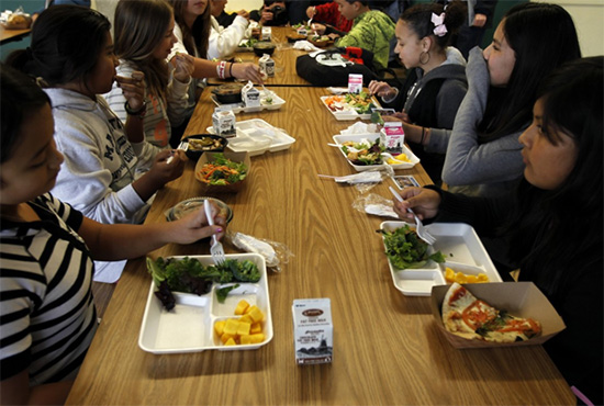 Students enjoying a healthy meal at a middle school in California, prior to the passage of SB 250. Photo: Reuters