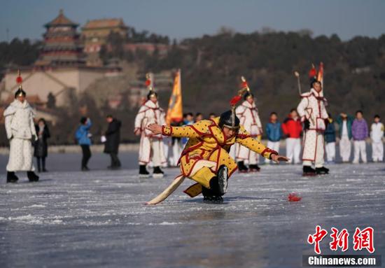 A special ice skating show, what was once an annual event held before the Spring Festival to entertain the emperor of Qing Dynasty, was staged Saturday in the Summer Palace, an ensemble of waters and gardens in Beijing, Chinanews.com reported.