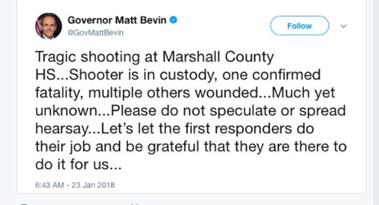 Screenshot of Governer Matt Bevin's Twitter account (Photo: Twitter)