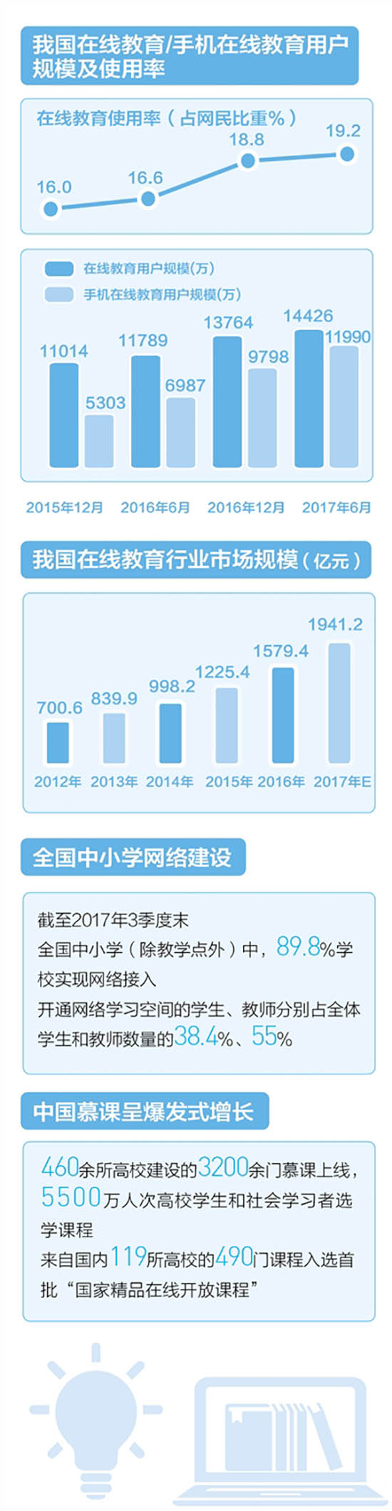 Online education, which brings quality resources to remote and impoverished regions, is bringing more fairness to China’s education system. By the end of the third quarter of 2017, 89.8% of China’s elementary and middle schools were connected to the Internet, and 85.1% of them established multi-media classrooms.