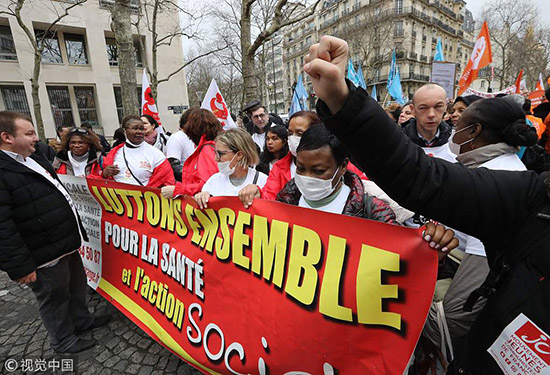 Paris (People's Daily) - Nursing home workers in France rallied today across the country, citing a lack of funding and poor working conditions, among many other concerns, as the quality of elderly care continues to crumble.