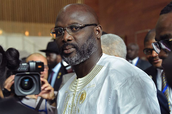 Liberian President George Weah announced plans to cut his salary and change parts of the country's consitition on Janaury 31, 2018. Photo: AFP