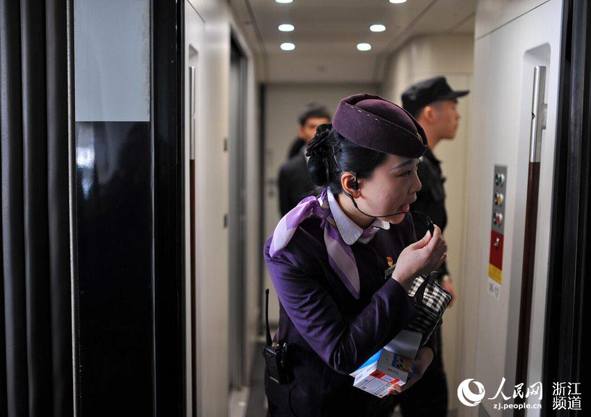 Jin Xin, a railway dispatcher at a train station in eastern China’s city of Hangzhou, stayed with his wife Wang Huan, a high-speed train conductor, for only two minutes after she stopped at the station.