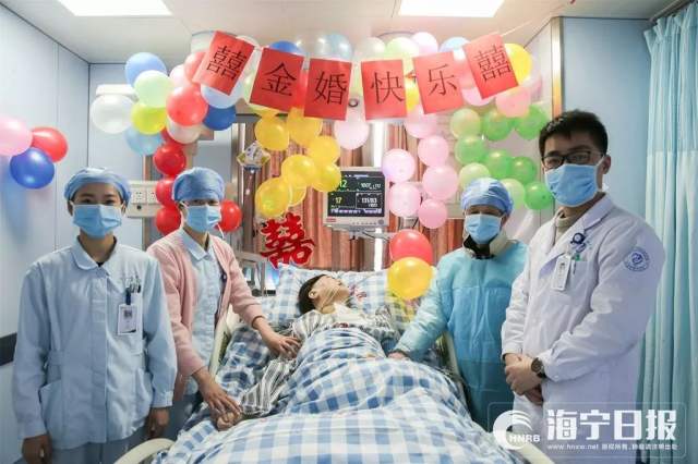 Photos of an old man holding a ceremony to celebrate the 50th anniversary of his marriage with his wife who is currently lying unconscious on a hospital bed have touched many hearts.