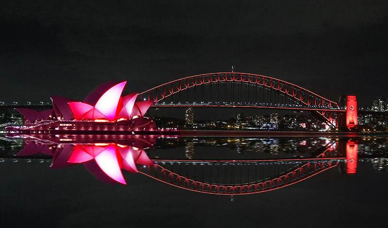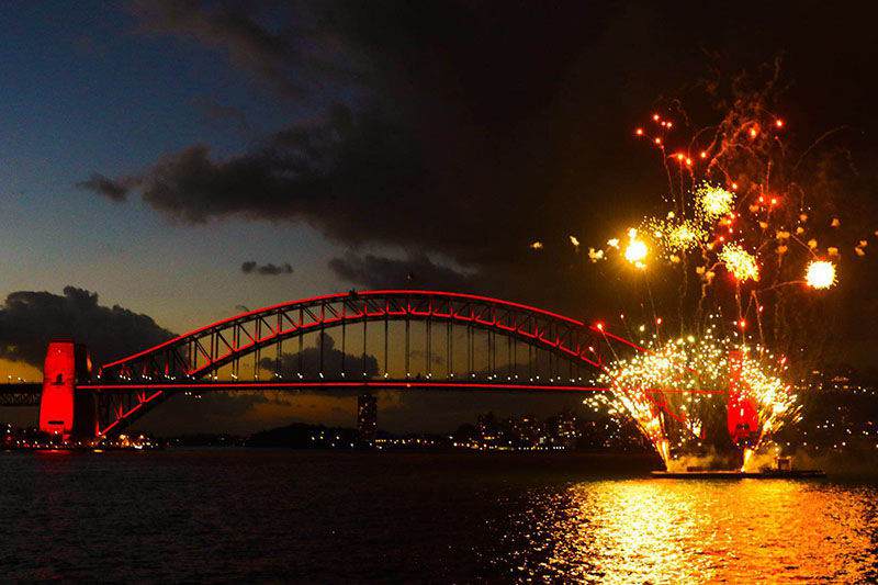 At 8:15 the Sydney Opera house and harbor bridge had been illuminated with red, while dazzling fireworks displayed light up the Sydney harbor’s skyline.