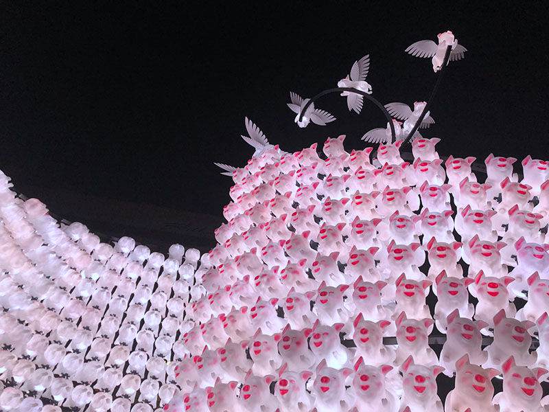 The celebration had drawn thousands of visitors to witness the coloring of landmark buildings, the fireworks and to enjoy the festival atmosphere with 12 zodiac animal lanterns, including the main eight-meter-tall golden dog lantern.