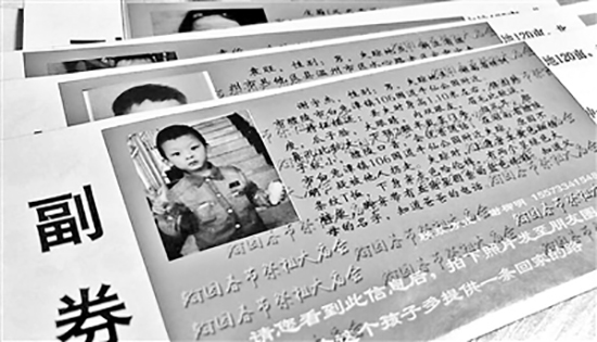 Name, photo, physical features and phone number of families. Such details of 300 missing children appeared on the temple fair tickets in central China’s Kaifeng, Henan province, People’s Daily Online reported Wednesday.