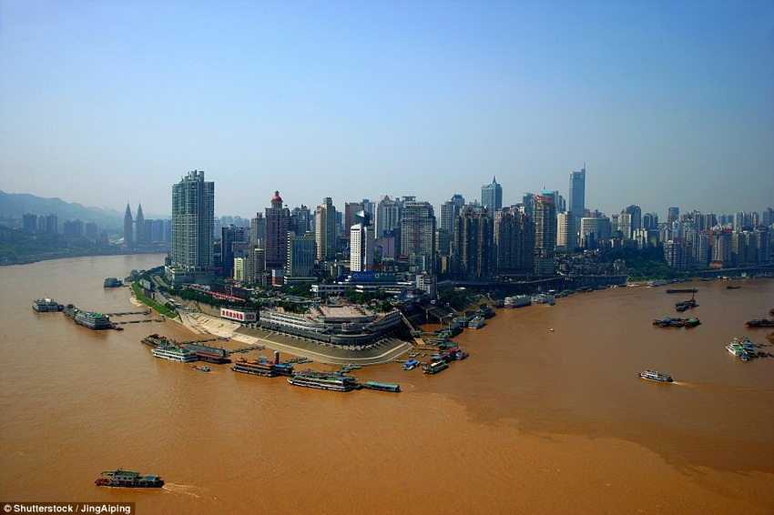 The iconic Yangtze River and Jialing River meet at the scenic Chaotianmen area, pictured before the construction started