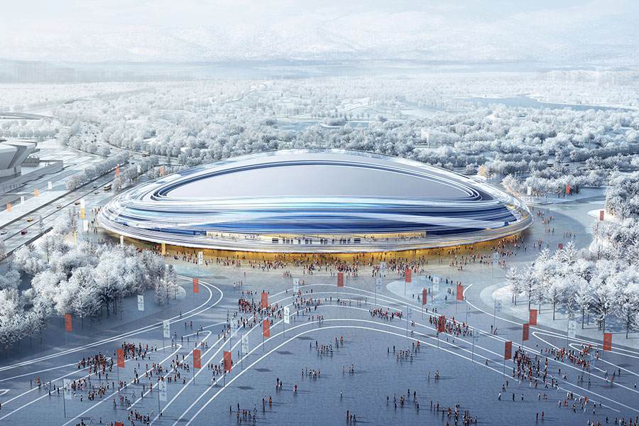 A design picture of the National Speed Skating Oval for long-track speed skating in Beijing. [Provided to China Daily]