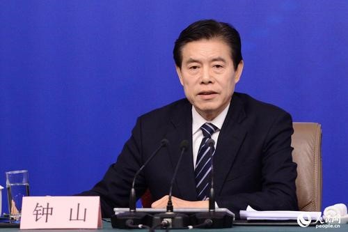 Chinese Commerce Minister Zhong Shan takes questions at a press conference on the sidelines of the first session of the 13th National People's Congress in Beijing, March 11, 2018. (Photo by Zhang Qichuan from People's Daily Online)