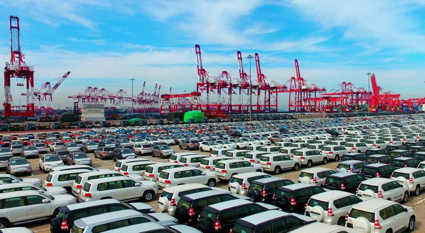 Imported cars are parked at Qingdao Qianwan Free Trade Port Zone, east China’s Shandong province. (Photo from CFP)