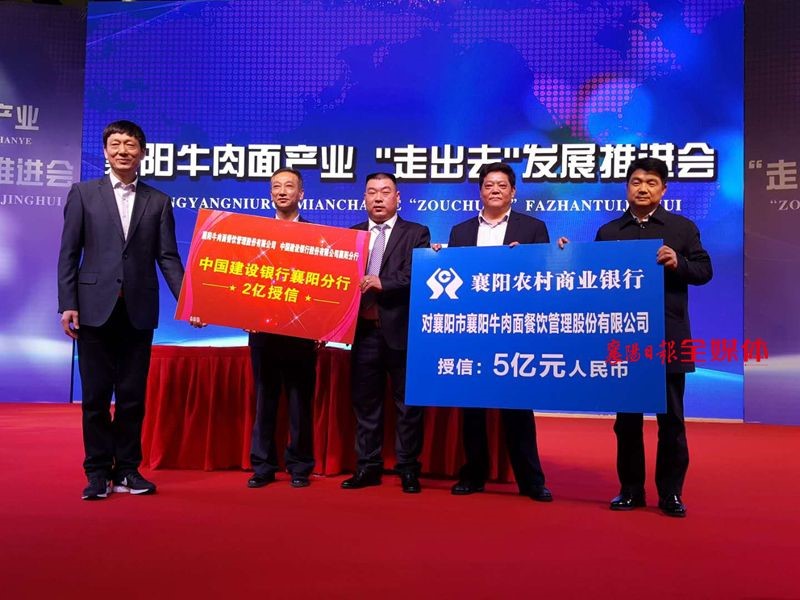 At the Promotional Conference on the Globalization of Xiangyang's Beef Noodles Industry on March 28, as Xiangyang's two banks in strategic partnership with Xiangyang's beef noodles industry, Xiangyang Rural Commercial Bank and China Construction Bank Xiangyang Branch granted RMB 500 million and RMB 200 million in credit for the globalization of Xiangyang Beef Noodles Restaurant Management Co., Ltd. respectively.