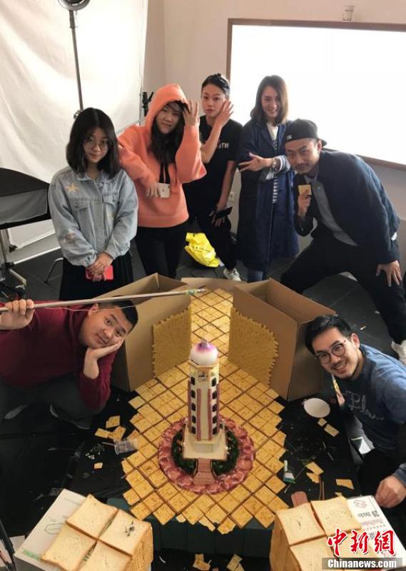 Over the course of one and a half months, seven young people created pictures of the six beautiful landmark buildings with 9,800 kinds of food materials such as noodles, biscuits, meat and vegetables, Chinanews.com reported on May 8.