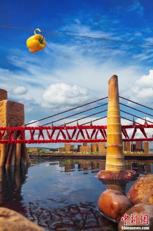 The iconic Chongqing Grand Theater made of food materials. (Photo: Chinanews.com)