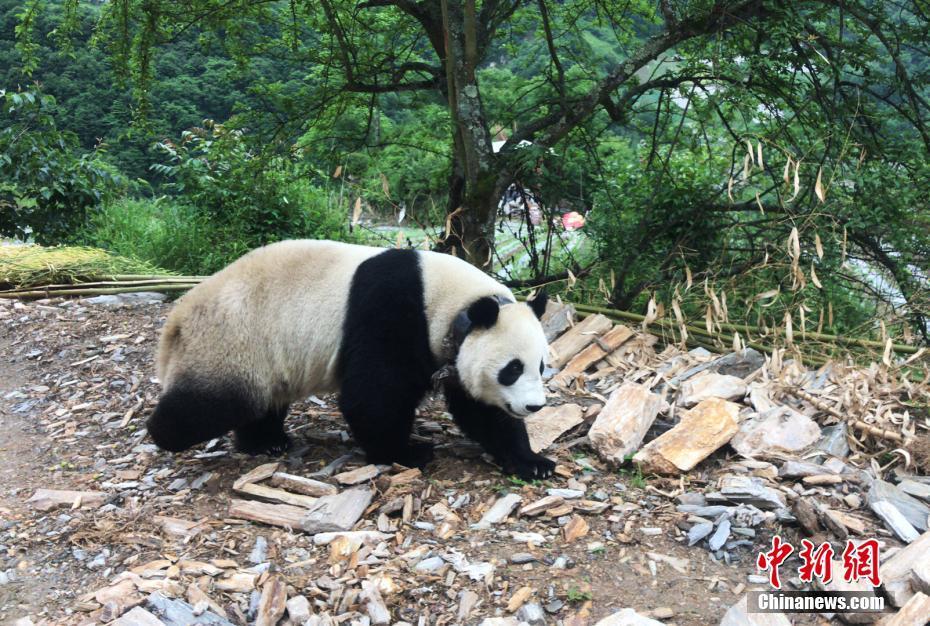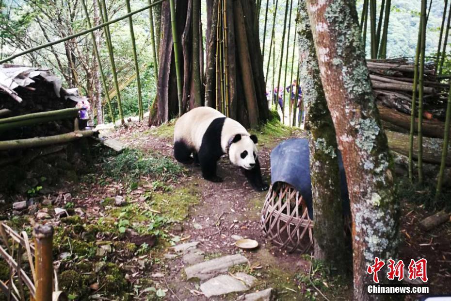 A panda wandered to Jinbo village, Wenchuan county of southwestern China’s Sichuan province on May 31. Thanks to video footage recorded by the villagers, viewers can make out a radio tracker around the panda's neck. Related departments later confirmed that this panda is in captivity for field studies.