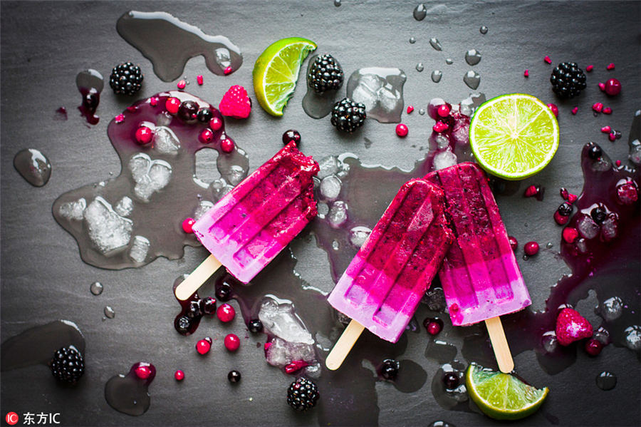 Yogurt and berry ice cream sticks. [Photo/IC]