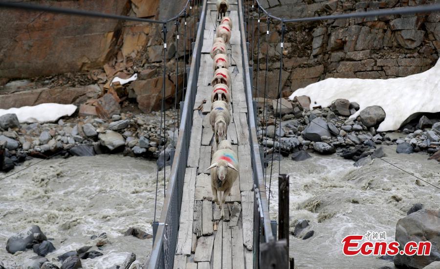 Sheep cross the alpine pass "Hochjoch" at 2,856 meters above sea level, in the autonomous region of South Tyrol, Italy, June 9, 2018. (Photo/Agencies)