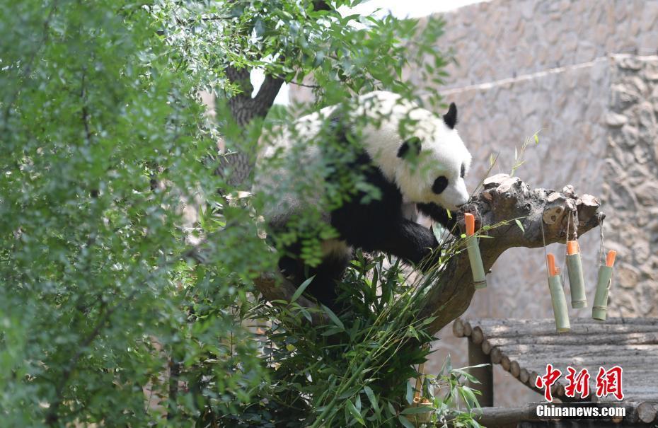 Pandas living in Jinan Zoo, east China’s Shandong province, climbed up to reach the zongzi that had been placed in bamboo tubes for them to enjoy. Zongzi is a sticky rice specialty served on China’s Dragon Boat Festival Day which fell on June 18, Chinanews.com reported on Tuesday.